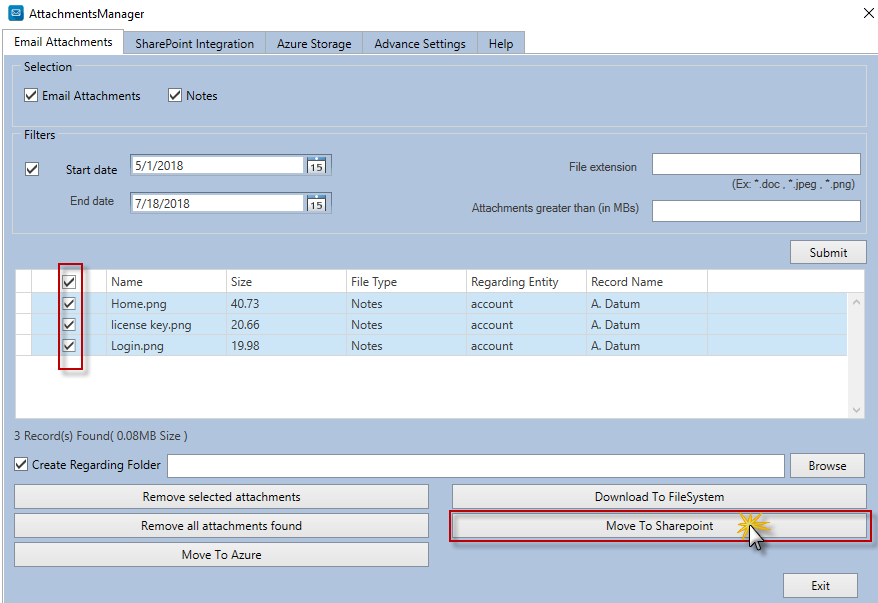 Email Attachment Manager is a desktop application from MTC aimed to help CRM users to manage their CRM email attachments and notes in a variety of ways. With Email Attachment Manager, CRM users can fetch email attachments and notes for a particular period, with preset file extensions and data size, and do the following things: