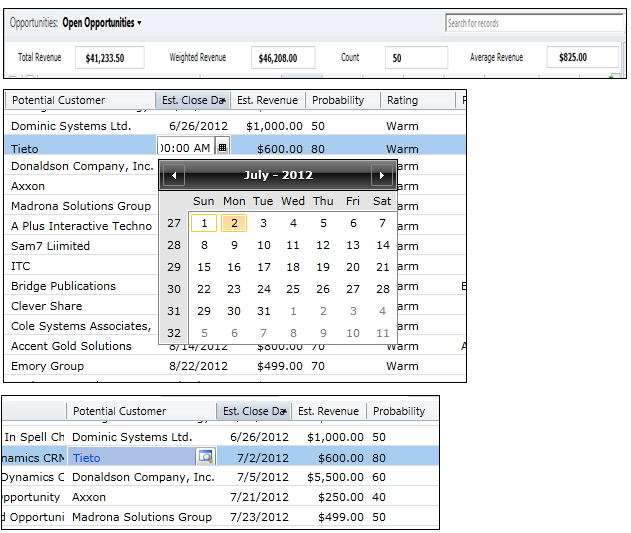 Edit Opportunities in - place on the View of your choice faster than ever before for an instant gain in productivity! Even edit down columns like in Microsoft Excel.