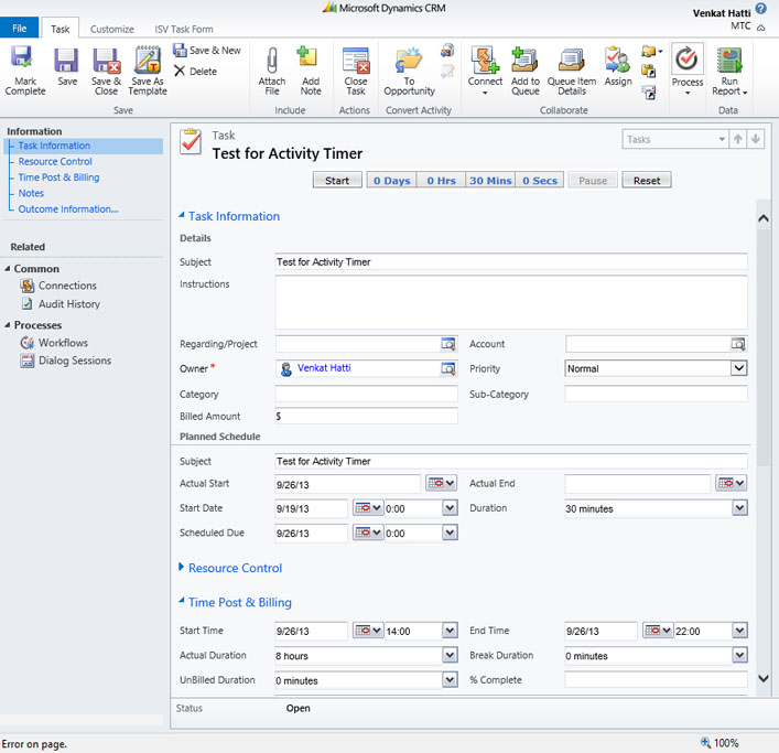 A Fixed time could be applied to a Phone Call Activity to function as a minimum time charge for uncompleted calls and upon a conversation starting the Activity Timer can be manually started to override the fixed time with the actual call duration. An "Auto" function setting allows automatic starting and stopping upon Open and Close of the selected Activity types which greatly reduces User time tracking errors and enhances professional productivity. Actual Timed Duration field added by this option is available in CRM Activity and History Views, forms, and custom reports. This utility is sold with Per User Licensing equal to the number of Dynamics CRM Licenses enabled.
