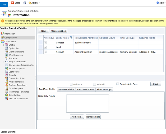 Super Grid for Microsoft Dynamics CRM is an industrial-strength add-on for administrators looking to speed up and simplify the process of Data Entry to any View and Sub-Grid Entity. It enables CRM Users to edit down a column like in excel with utmost ease. Super Grid also provides an option to add custom grids to dashboard and forms. Super Grid is compatible with CRM 2016 and below versions.
